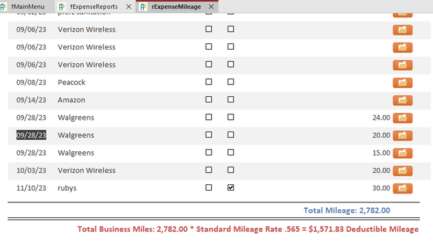 Automatic calculations of mileage, deductible food allowances, and timeshare percentages